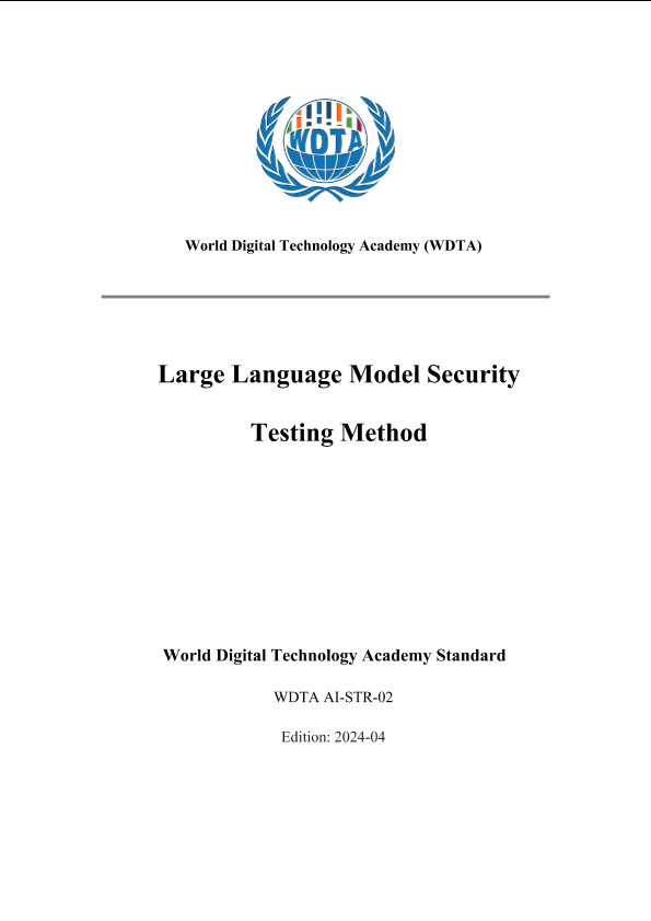 【World Digital Technology Academy (WDTA)】【20240401】大型语言模型安全性测试方法-22页