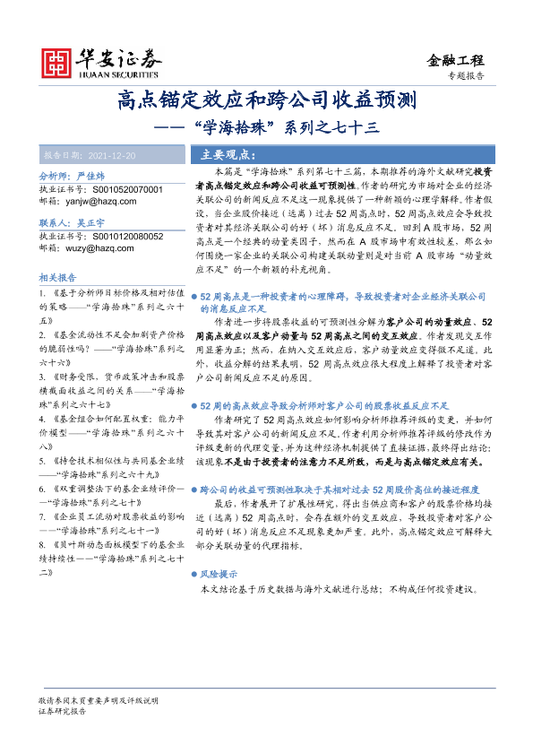 【华安证券】【20211220】高点锚定效应和跨公司收益预测-22页