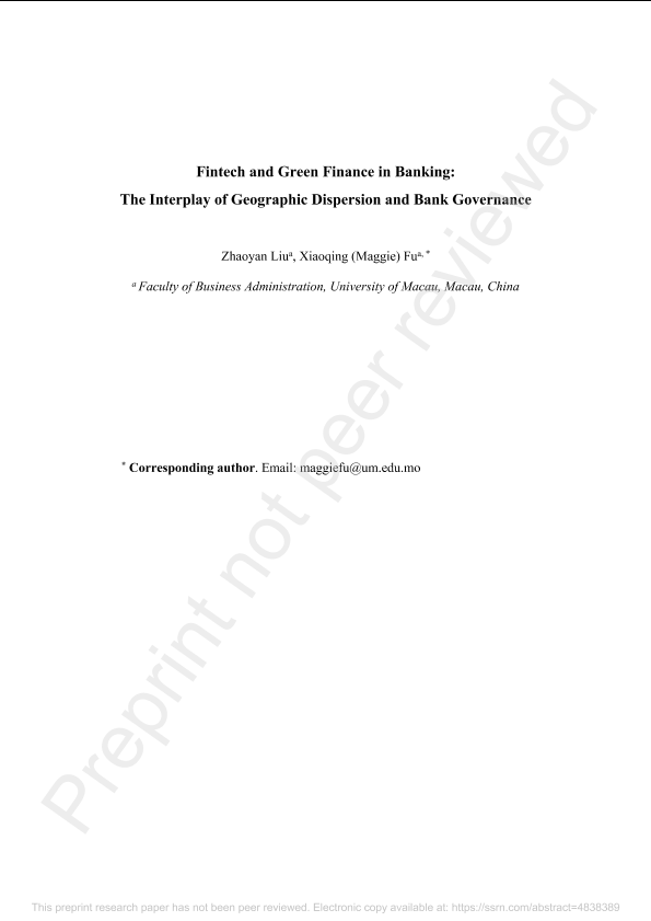 【Zhaoyan Liua】【20240101】金融科技与绿色金融在银行业中的互动:地理分布与银行治理的关系-52页