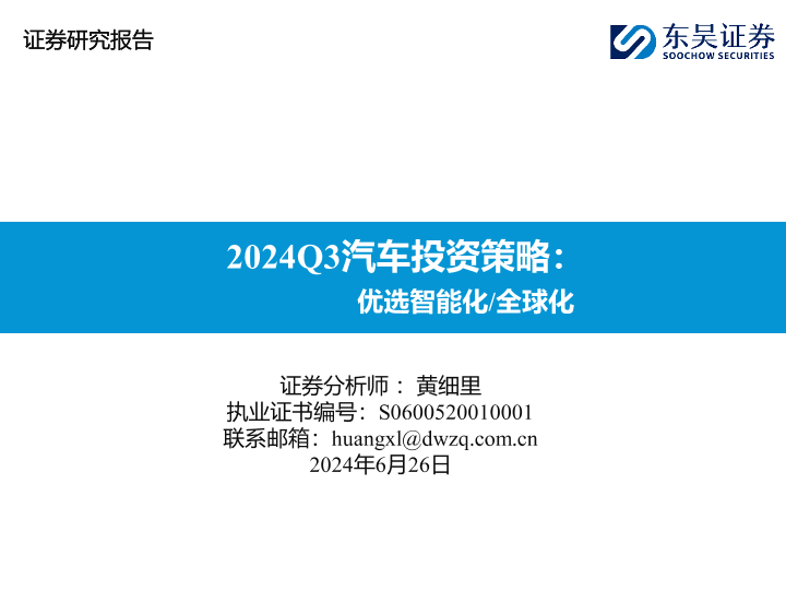 【东吴证券】【20240626】2024Q3汽车行业投资策略:优选智能化/全球化-48页