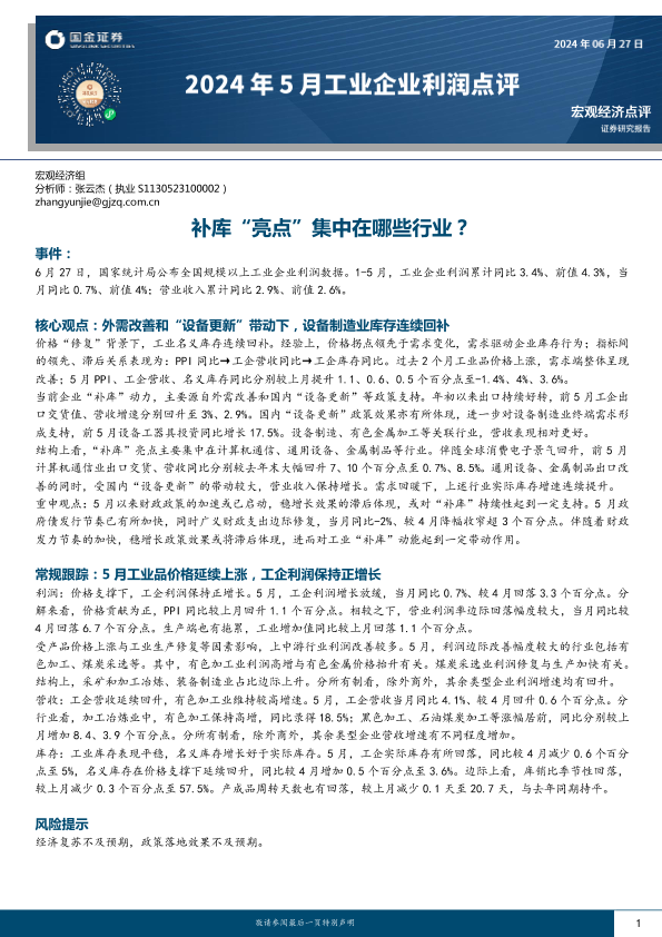【国金证券】【20240627】2024年5月工业企业利润点评:补库“亮点”集中在哪些行业?-10页