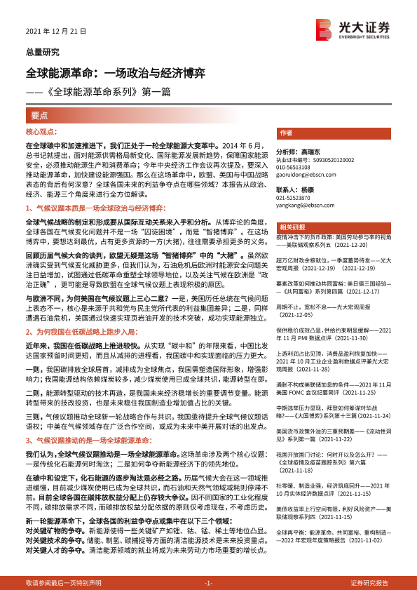 【光大证券】【20211221】全球能源革命系列第一篇:全球能源革命,一场政治与经济博弈-32页