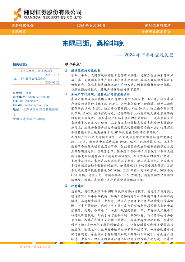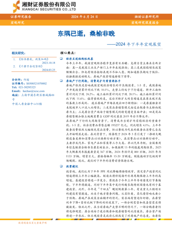 【湘财证券】【20240624】2024年下半年宏观展望:东隅已逝,桑榆非晚-31页