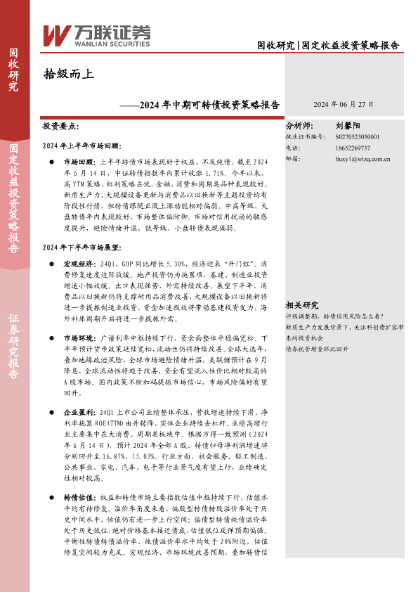 【万联证券】【20240627】2024年中期可转债投资策略报告:拾级而上-26页