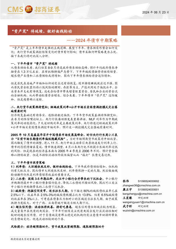 【海通证券】【20240623】2024年债市中期策略:“资产荒”将延续,做好曲线轮动-18页