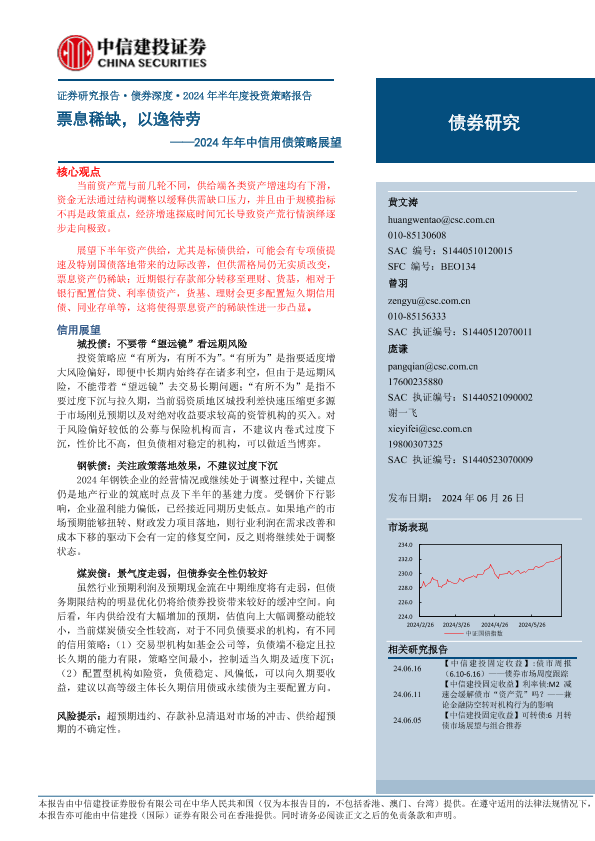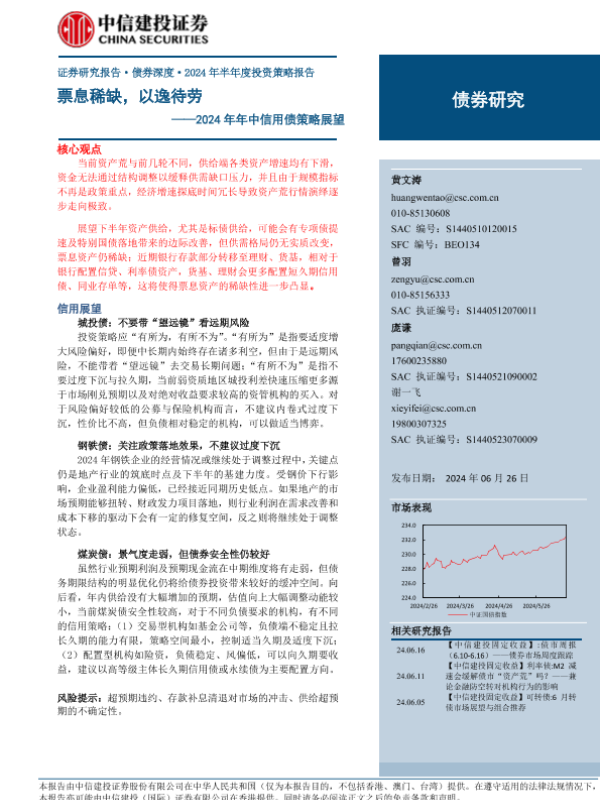 【中信建投证券】【20240626】2024年年中信用债策略展望:票息稀缺,以逸待劳-20页