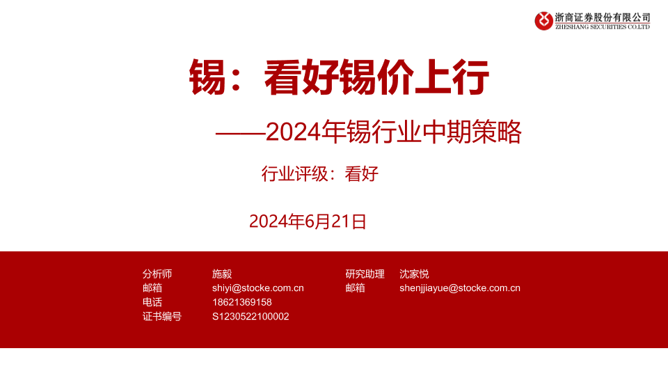 【浙商证券】【20240621】2024年锡行业中期策略-锡:看好锡价上行-17页