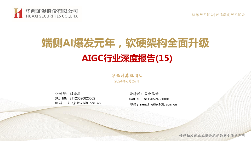 【华西证券】【20240626】AIGC行业深度报告(15):端侧AI爆发元年,软硬架构全面升级-51页
