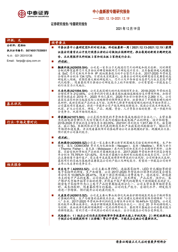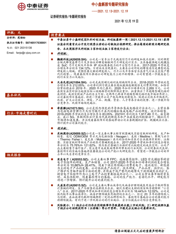 【中泰证券】【20211219】中小盘新股专题研究报告-28页