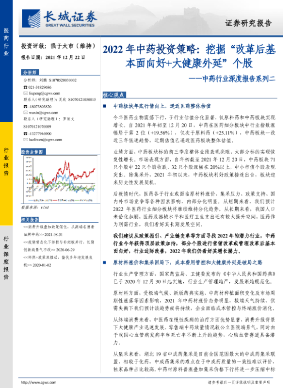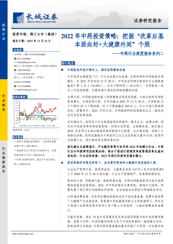 【长城证券】【20211222】中药行业深度报告系列二:2022年中药投资策略,挖掘“改革后基本面向好 大健康外延”个股-36页