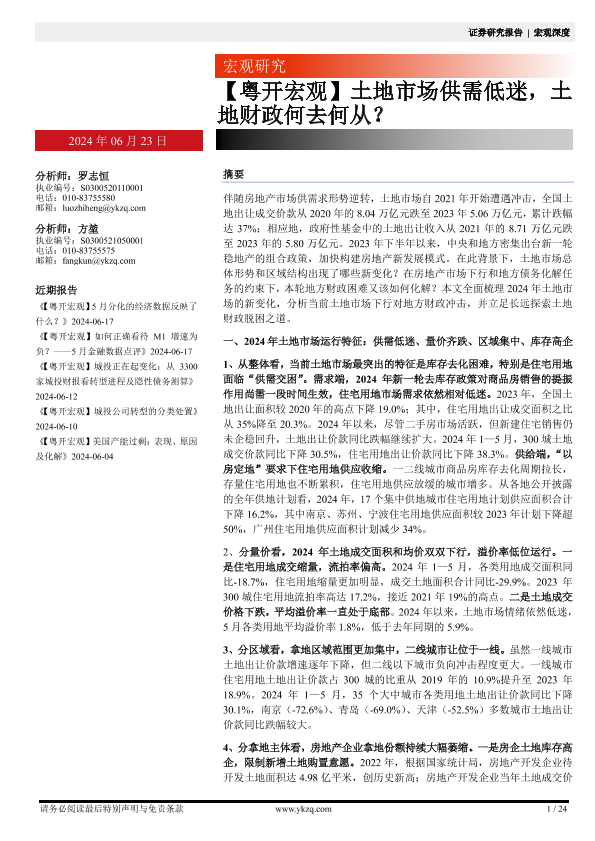 【粤开证券】【20240623】土地市场供需低迷,土地财政何去何从?-24页