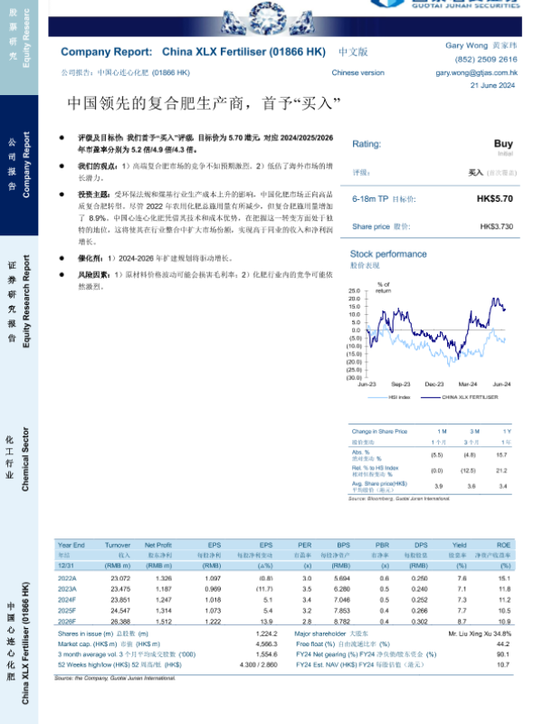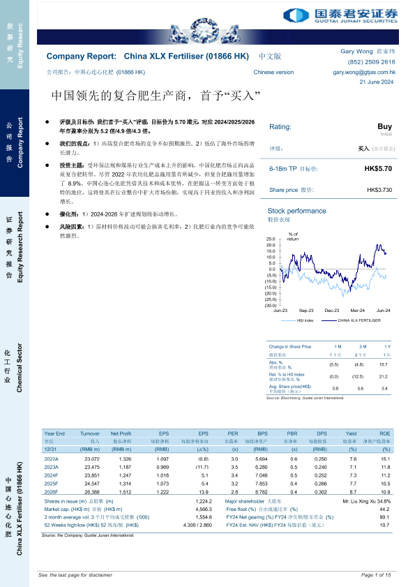 【国泰君安证券】【20240621】中国心连心化肥(1866.HK)中国领先的复合肥生产商,首予“买入”-15页