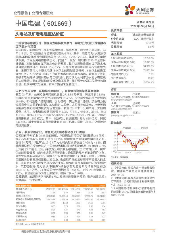 【天风证券】【20240626】中国电建(601669)从电站及矿看电建重估价值-11页