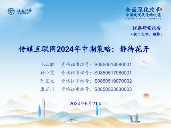 【海通证券】【20240621】传媒互联网行业2024年中期策略:静待花开-33页