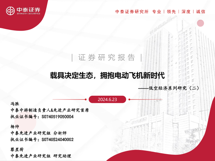 【中泰证券】【20240623】低空经济行业系列研究(二):载具决定生态,拥抱电动飞机新时代-27页