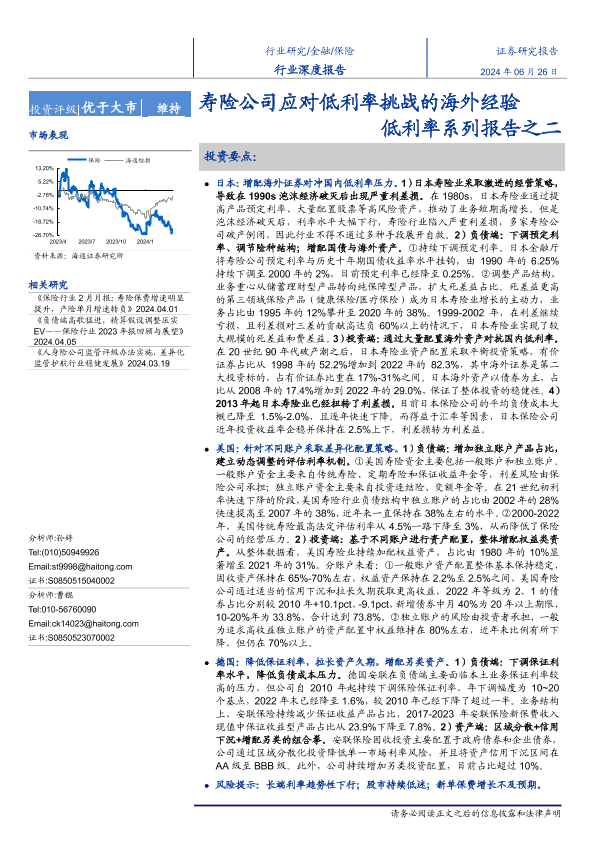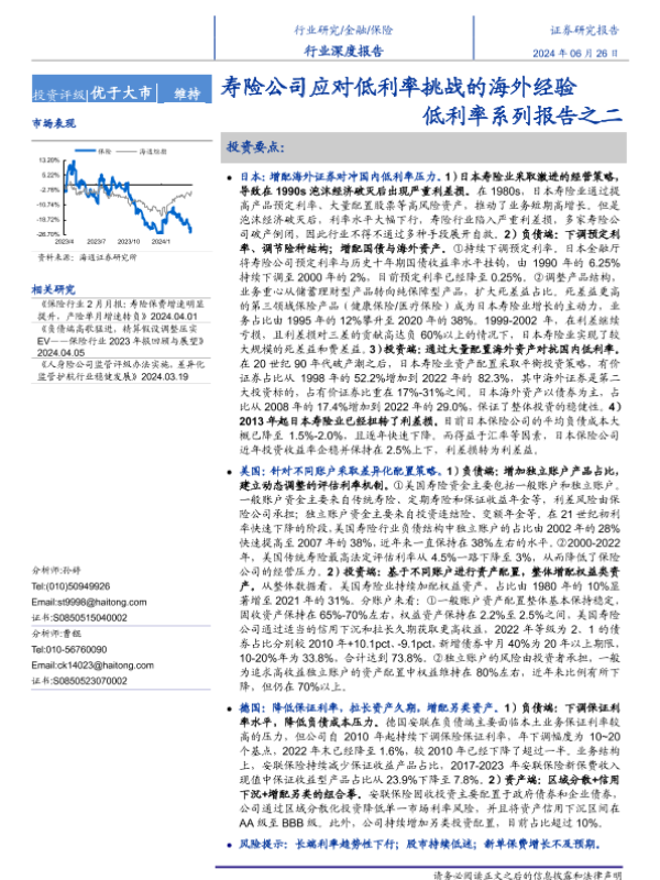 【海通证券】【20240626】保险行业低利率系列报告之二:寿险公司应对低利率挑战的海外经验-20页