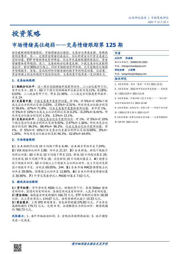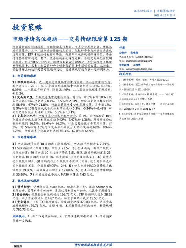 【国盛证券】【20211222】交易情绪跟踪第125期:市场情绪高位趋弱-15页