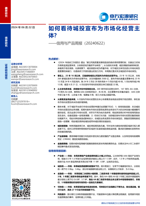 【申万宏源】【20240622】信用与产品:如何看待城投宣布为市场化经营主体?-11页