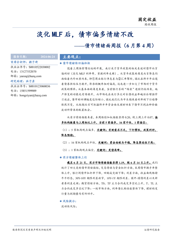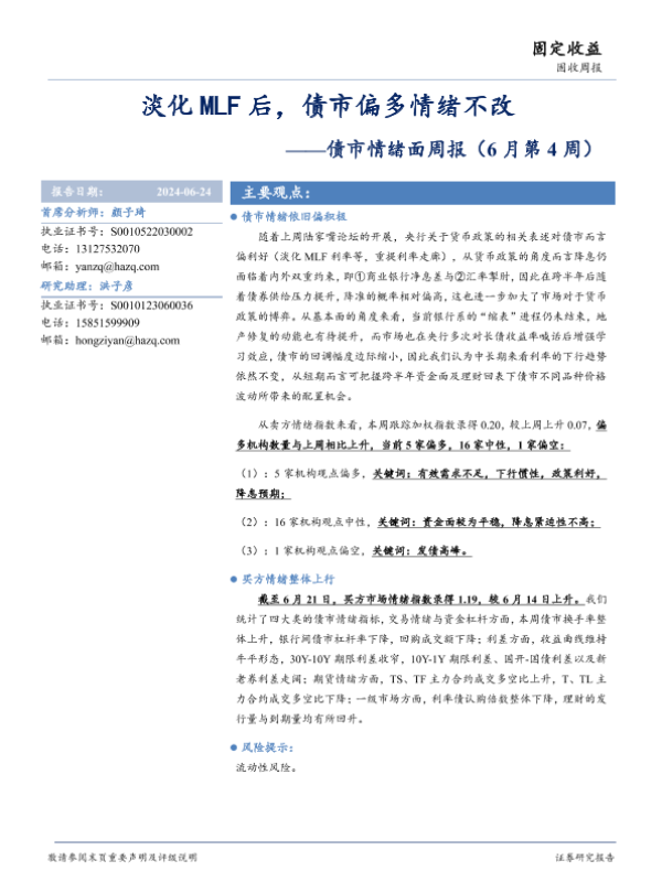 【华安证券】【20240624】债市情绪面:淡化MLF后,债市偏多情绪不改-13页