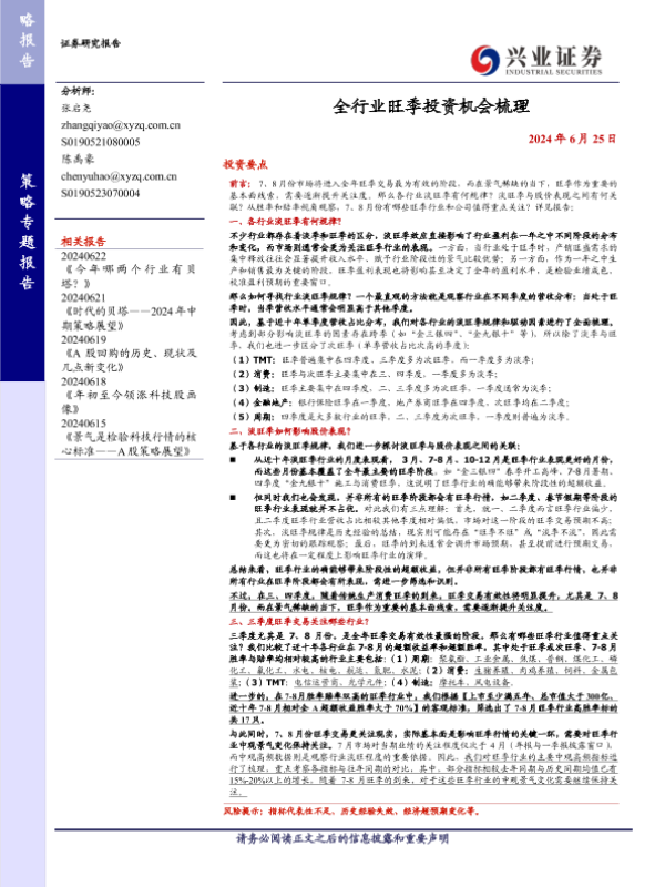【兴业证券】【20240625】全行业旺季投资机会梳理-22页