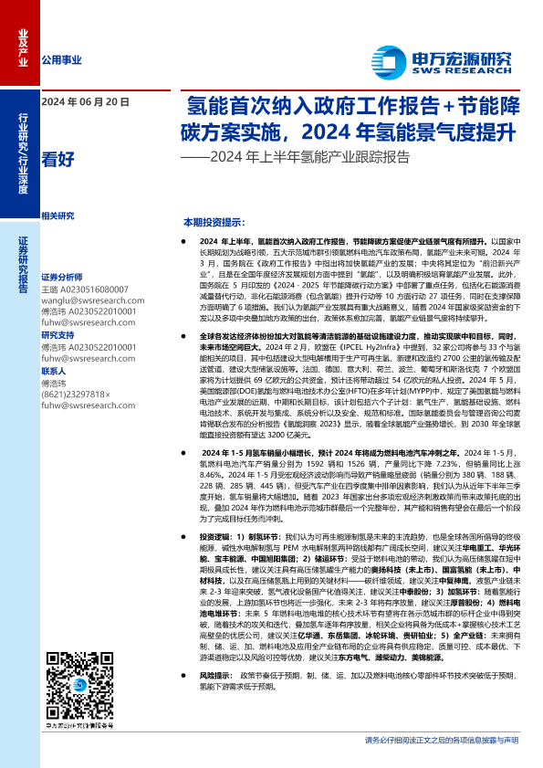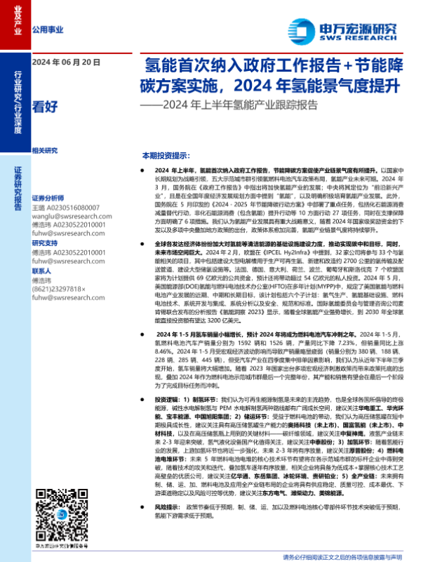 【申万宏源】【20240620】公用事业行业2024年上半年氢能产业跟踪报告-45页