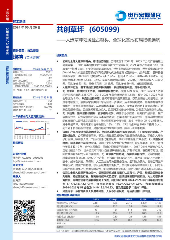 【申万宏源】【20240626】共创草坪(605099)人造草坪领域独占鳌头,全球化基地布局扬帆远航-32页