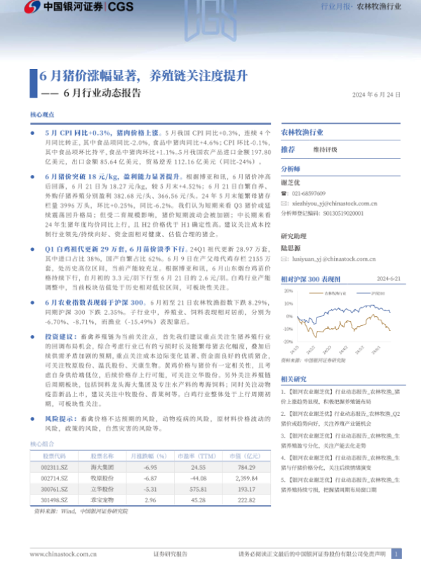 【银河证券】【20240624】农林牧渔行业6月行业动态报告:6月猪价涨幅显著,养殖链关注度提升-23页