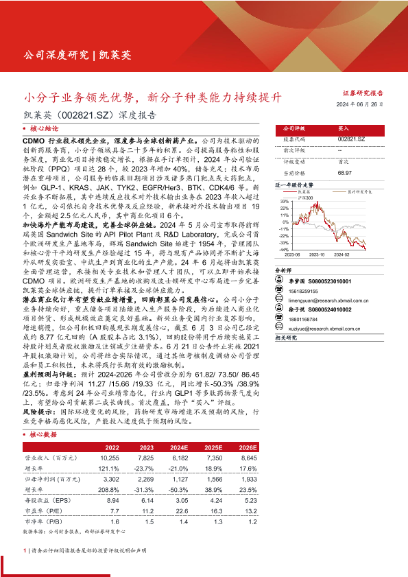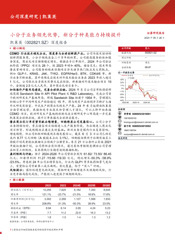 【西部证券】【20240626】凯莱英(002821)深度报告:小分子业务领先优势,新分子种类能力持续提升-36页
