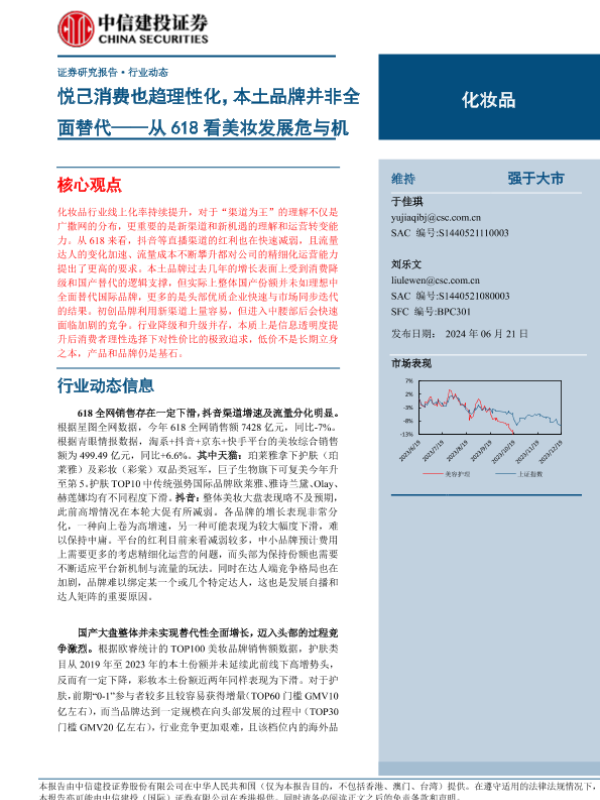 【中信建投证券】【20240621】化妆品行业:从618看美妆发展危与机,悦己消费也趋理性化,本土品牌并非全面替代-17页