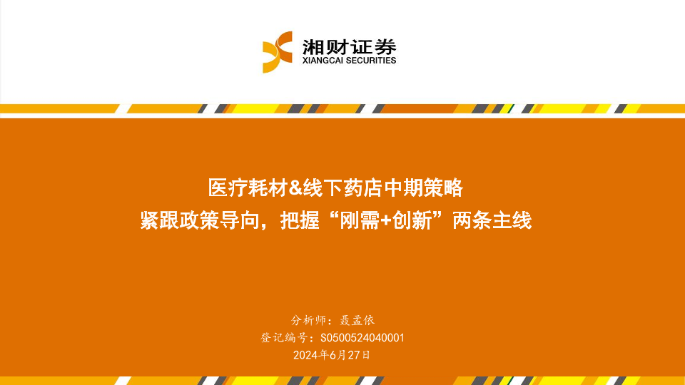 【湘财证券】【20240627】医疗耗材&线下药店行业中期策略:紧跟政策导向,把握“刚需+创新”两条主线-25页
