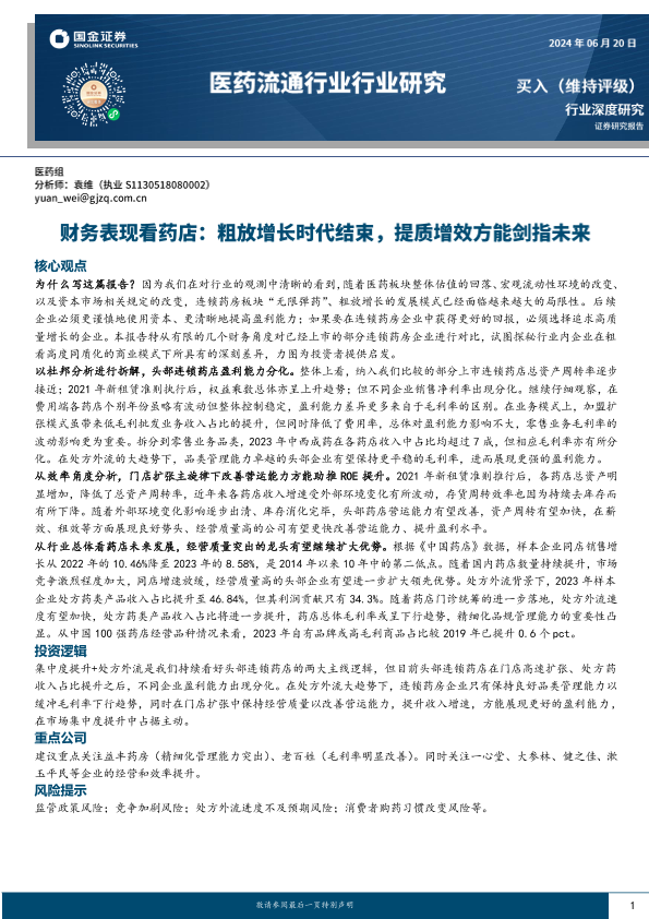 【国金证券】【20240620】医药流通行业行业研究:财务表现看药店,粗放增长时代结束,提质增效方能剑指未来-18页
