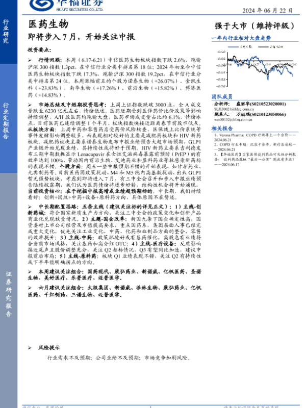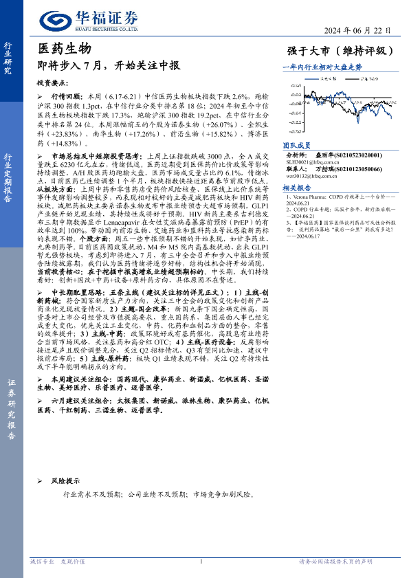 【华福证券】【20240622】医药生物行业定期报告:即将步入7月,开始关注中报-12页