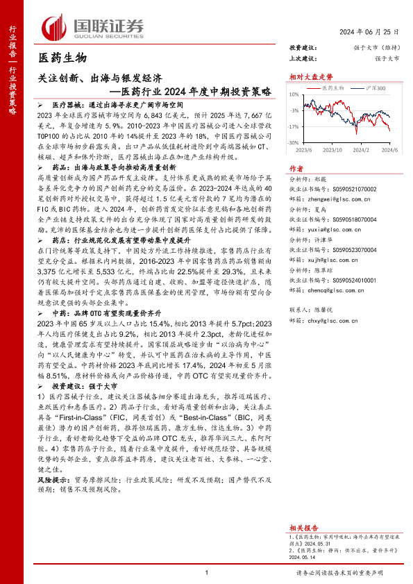 【国联证券】【20240625】医药行业2024年度中期投资策略:关注创新、出海与银发经济-54页