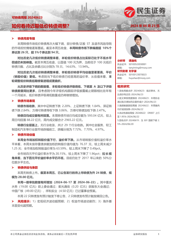 【民生证券】【20240623】可转债:如何看待近期低价转债调整?-20页