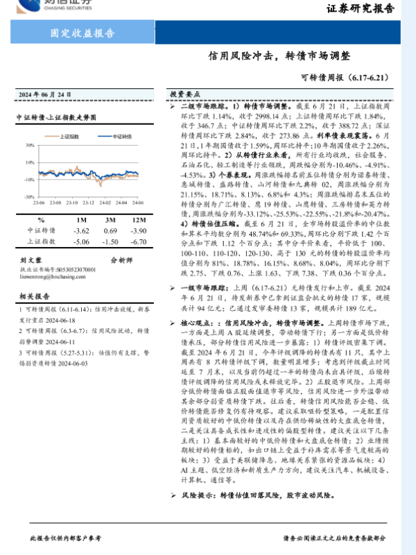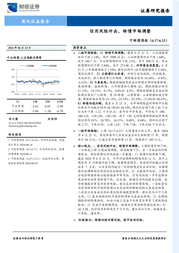 【财信证券】【20240624】可转债:信用风险冲击,转债市场调整-10页