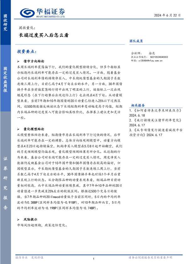 【华福证券】【20240622】固收量化:长端过度买入后怎么看-16页