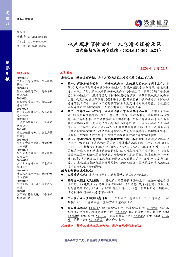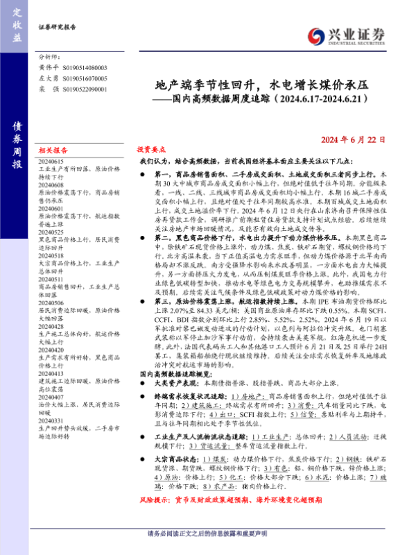 【兴业证券】【20240622】国内高频数据追踪:地产端季节性回升,水电增长煤价承压-20页