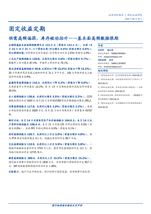 【国盛证券】【20240625】基本面高频数据跟踪:供需高频偏弱,库存被动抬升-22页
