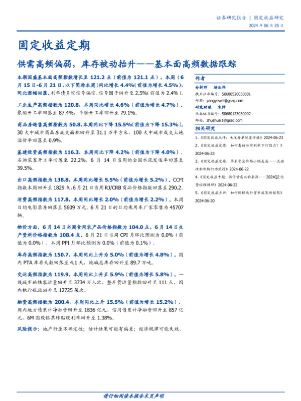 固定收益 库存变化 房地产市场 经济分析 高频数据