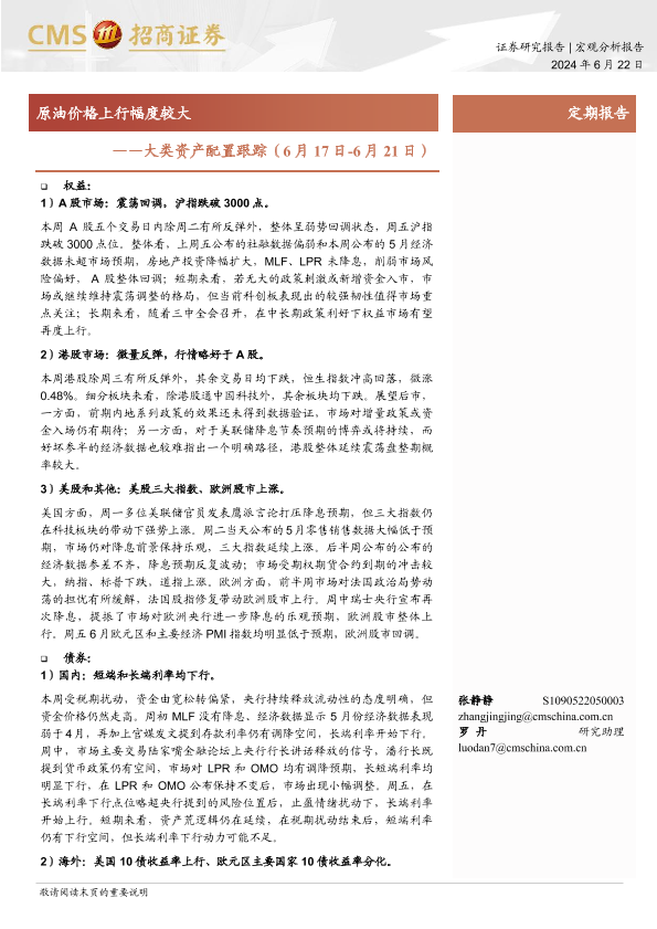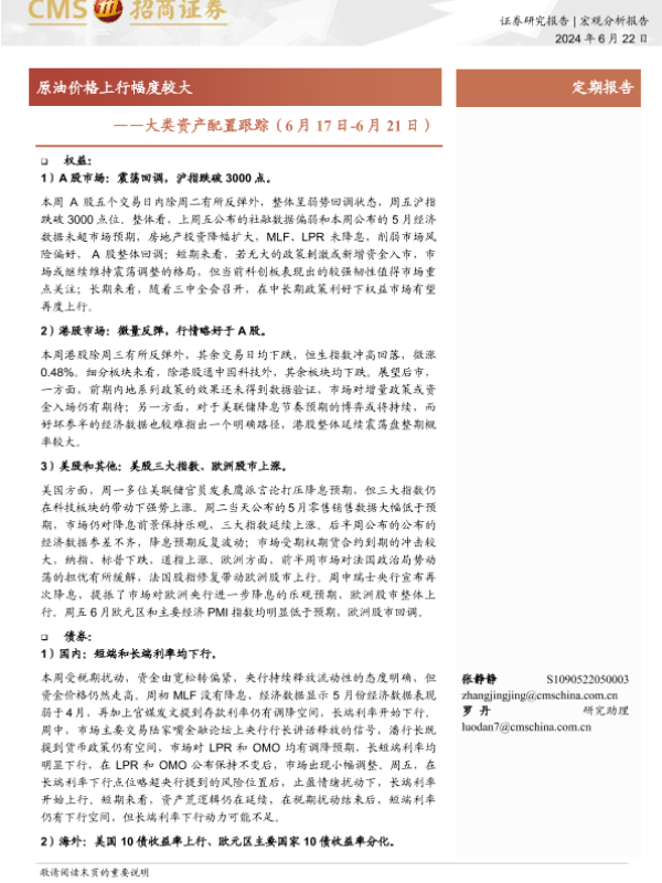 【海通证券】【20240622】大类资产配置跟踪:原油价格上行幅度较大-11页