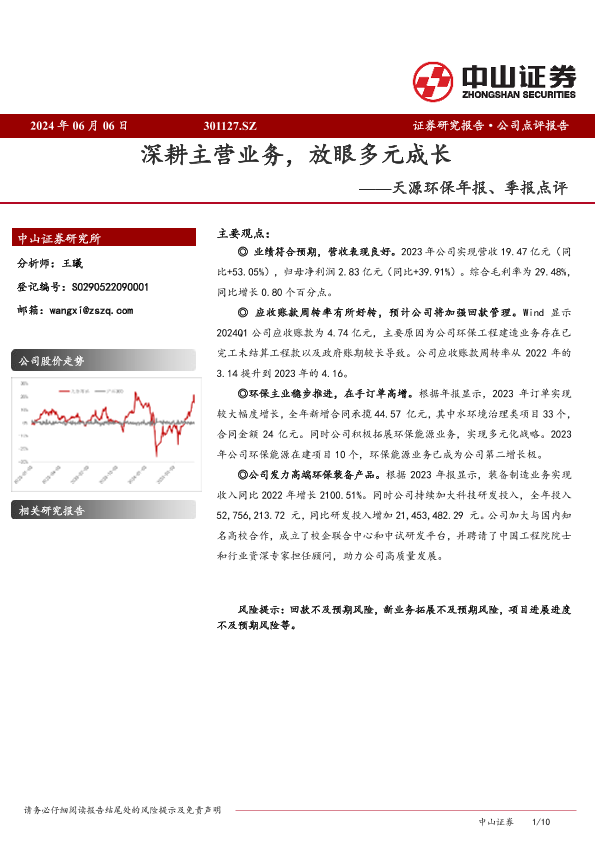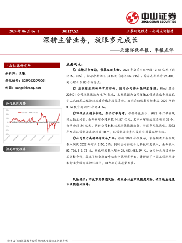【中山证券】【20240606】天源环保年报、季报点评:深耕主营业务,放眼多元成长-10页
