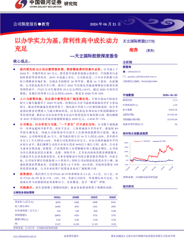【银河证券】【20240621】天立国际控股(1773.HK)深度报告:以办学实力为基,营利性高中成长动力充足-23页