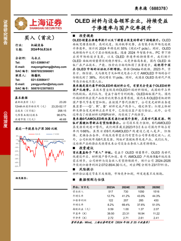 【上海证券】【20240626】奥来德(688378)OLED材料与设备领军企业,持续受益于渗透率与国产化率提升-21页