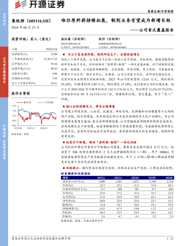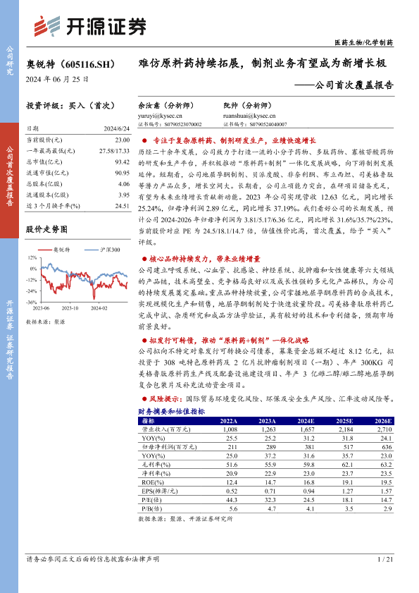 【开源证券】【20240625】奥锐特(605116)公司首次覆盖报告:难仿原料药持续拓展,制剂业务有望成为新增长极-21页