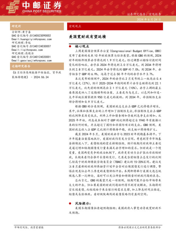 【中邮证券】【20240624】宏观观点:美国宽财政有望延续-10页