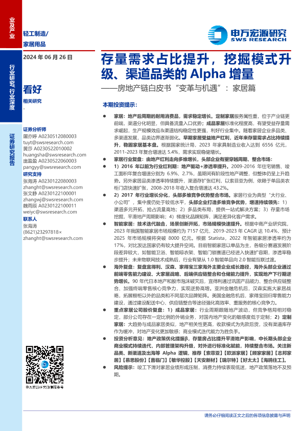 【申万宏源】【20240626】家居用品行业房地产链白皮书“变革与机遇”:家居篇,存量需求占比提升,挖掘模式升级、渠道品类的Alpha增量-33页