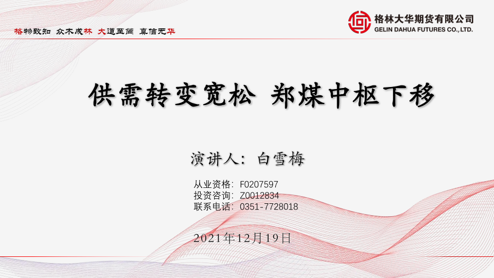 【格林大华期货】【20211219】供需转变宽松,郑煤中枢下移-24页