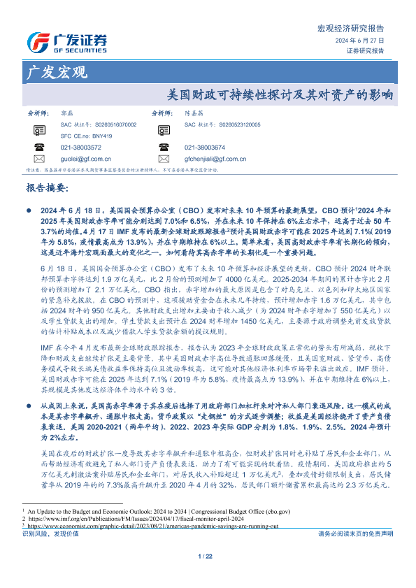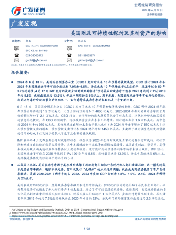【广发证券】【20240627】美国财政可持续性探讨及其对资产的影响-22页