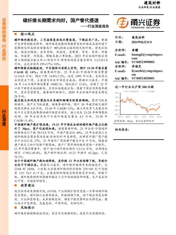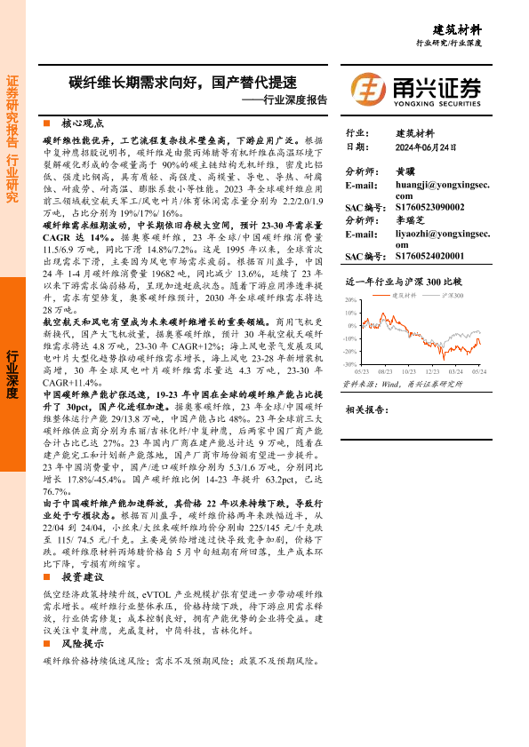 【甬兴证券】【20240624】建筑材料行业深度报告:碳纤维长期需求向好,国产替代提速-22页