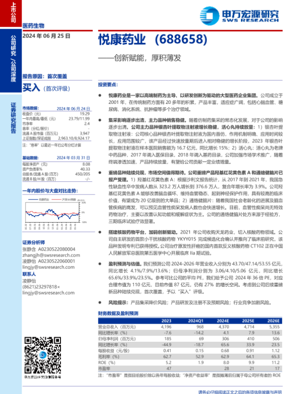 【申万宏源】【20240625】悦康药业(688658)创新赋能,厚积薄发-21页